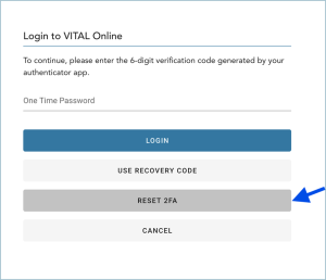 Two Factor Authentication (2FA) has been implemented in VITAL Online to maintain required security standards.